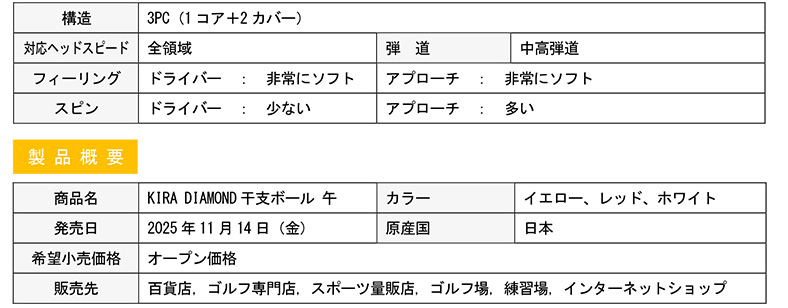 ゴルフ用品総合メーカーのキャスコ株式会社(東京都新宿区 代表取締役社長:阿部二幸)は、「KIRA DIAMOND(キラダイヤモンド)」より2026年の干支である午(馬)を描いた干支ボールを2025年11月14日(金)に発売いたします。